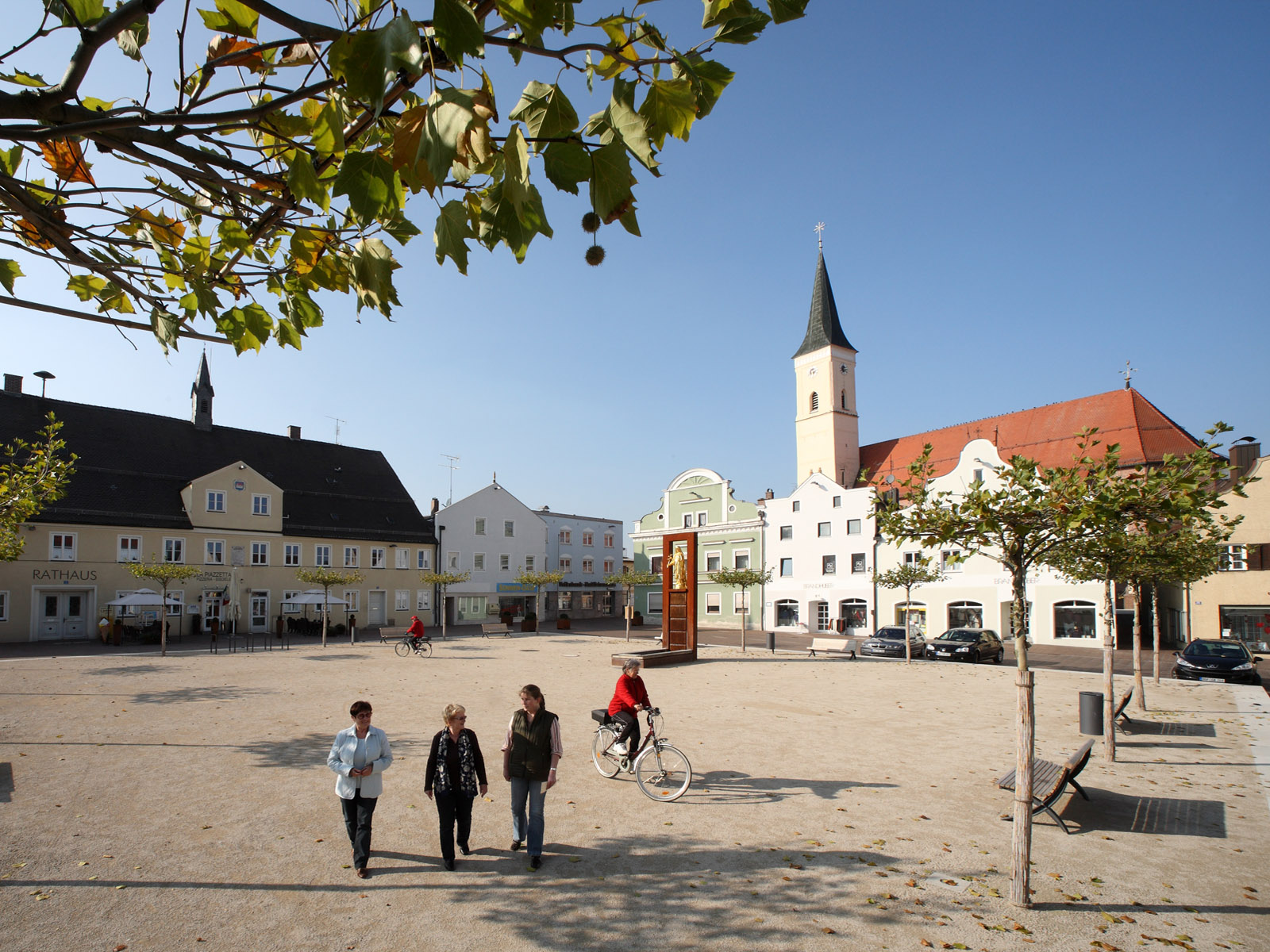 Eine Maßnahme in dieser Größenordnung, die einen kompletten Innenort umkrempelt, die alte Gewohnheiten hinterfragt und deren Umsetzung von allen freiwillig oder unfreiwillig Betroffenen gute Nerven und Ausdauer verlangt, kann nur mit der Akzeptanz der Bevölkerung vor Ort zu einem Erfolg werden. Und so kneteten und modellierten ein Team aus interdisziplinären Planern, ortsansässigen Firmen und engagierten Bürgern den Teig für die neue Auslage des Marktes Frontenhausen.