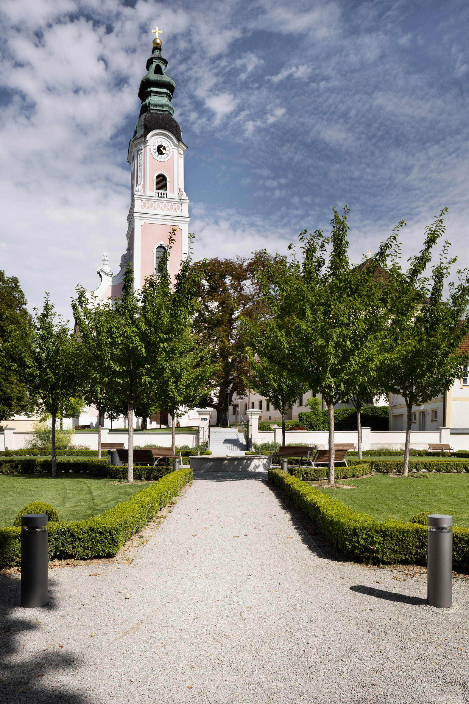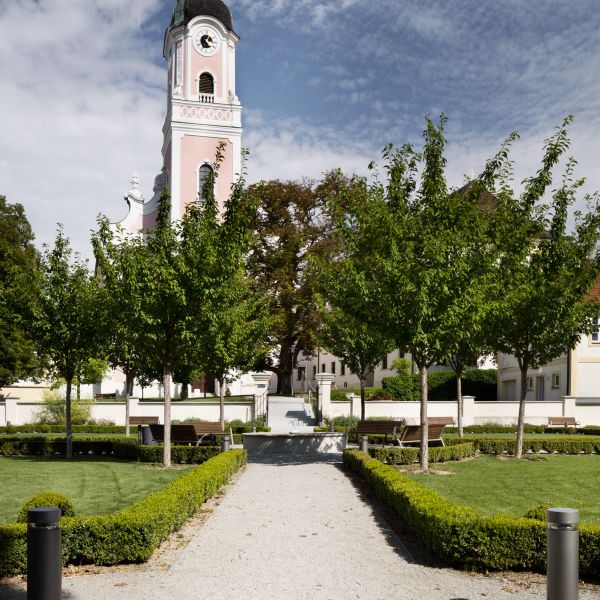 Der Pfarrgarten wurde nach historischem Vorbild neu gestaltet. Dabei wurde seine einst barocke Form aufgegriffen und zeitgemäß wieder hergestellt.